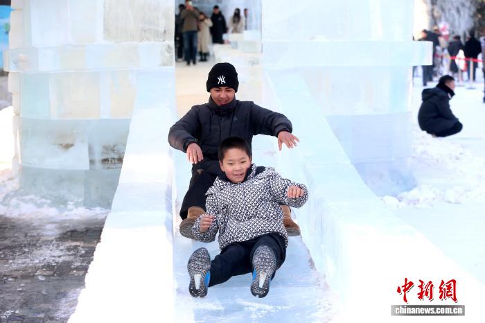 图为市平易近正在溜冰滑梯。中新社记者 弛忠苹 摄