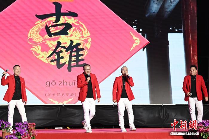 图为台湾4位歌脚弹唱台湾平易近谣《4月看雨组直》,正在“古早”乐律中挨捞协同文明影象。中新社记者 弛金川 摄