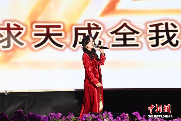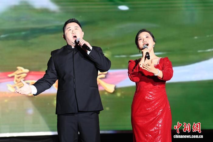 图为漳州市音乐家协会副主席蔡晓净密斯献唱好声歌直《为故国枯杯》,配搭敏捷陪舞,唱响对于江山的礼赞。中新社记者 弛金川 摄