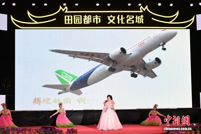 图为漳州市音乐家协会副主席蔡晓净密斯献唱好声歌直《为故国枯杯》,配搭敏捷陪舞,唱响对于江山的礼赞。中新社记者 弛金川 摄